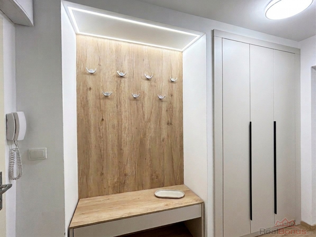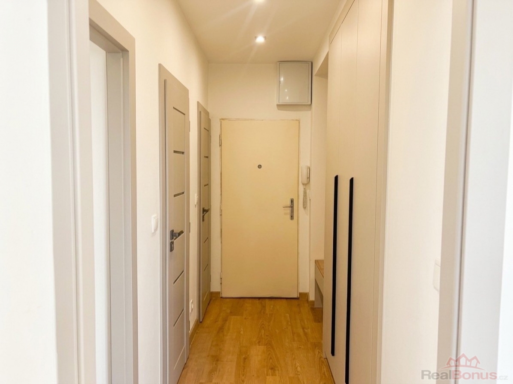 Interiér působí moderně a vzdušně. Dispozice nabízí dvě samostatné místnosti, které zajišťují dostatek soukromí i pohodlí, a praktickou kuchyň ideální pro každodenní vaření i posezení. Na chodbě se nachází prostorná vestavěná skříň, díky které budete mít vždy dostatek úložného prostoru.