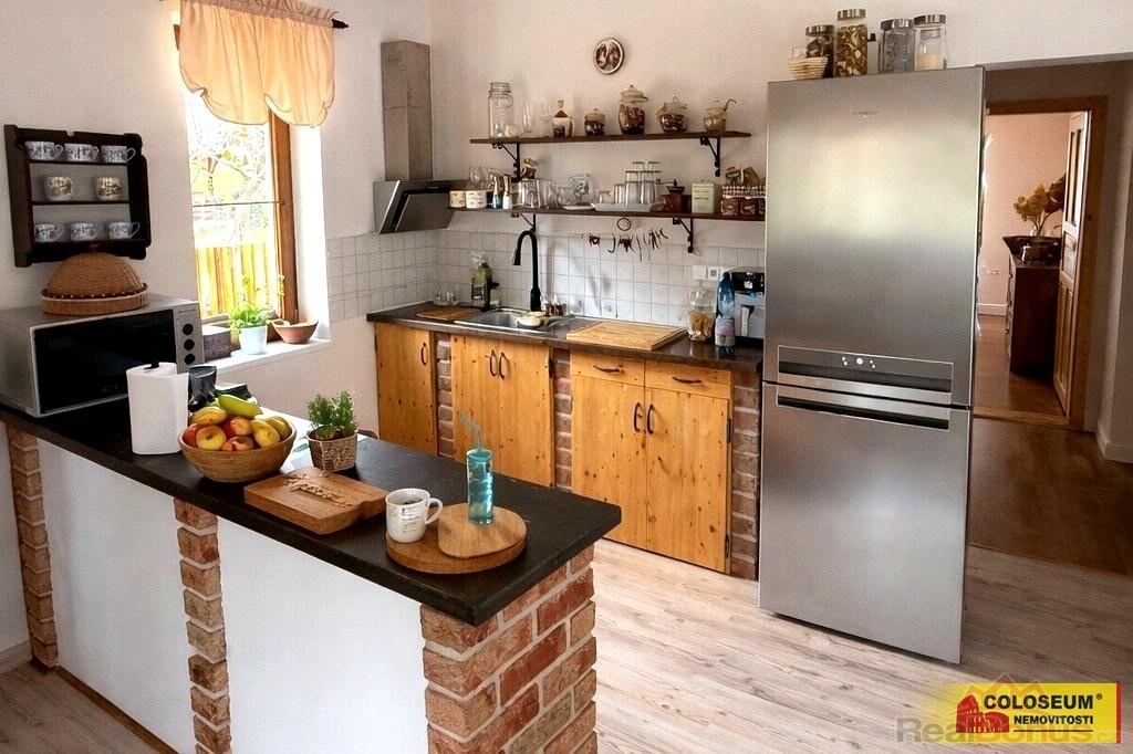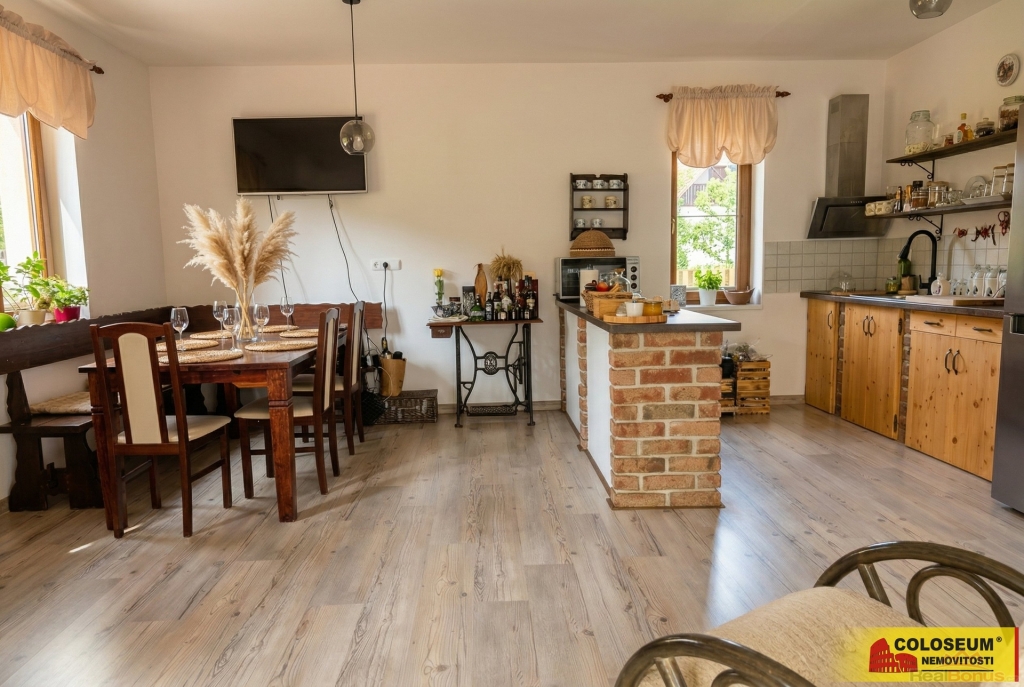 Dispozice domu je řešena jako 4+kk a nabízí tři samostatné pokoje, dvě koupelny a prostorný obývací pokoj s kuchyňským koutem, který tvoří přirozené centrum celého domova. Dominantou této hlavní místnosti jsou stylová kachlová kamna, jež nejen zahřejí, ale umožní i vaření či pečení a dodají interiéru osobitý charakter.