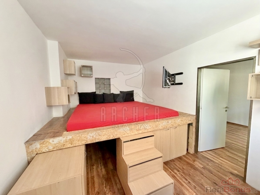 Byt nabízí velmi chytré a funkční řešení prostoru. K dispozici je dostatek úložných prostor přímo v bytě najdete špajzku i samostatnou šatnu. Velkým benefitem je také prostorná koupelna se sprchovým koutem, která působí vzdušně a komfortně.