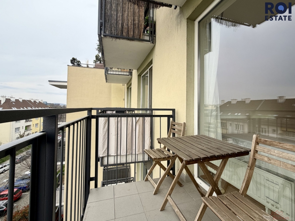 Byt se nachází ve 4. patře udržovaného domu s výtahem a jeho velkou předností je prostorný balkon, ideální pro ranní kávu nebo večerní relax.