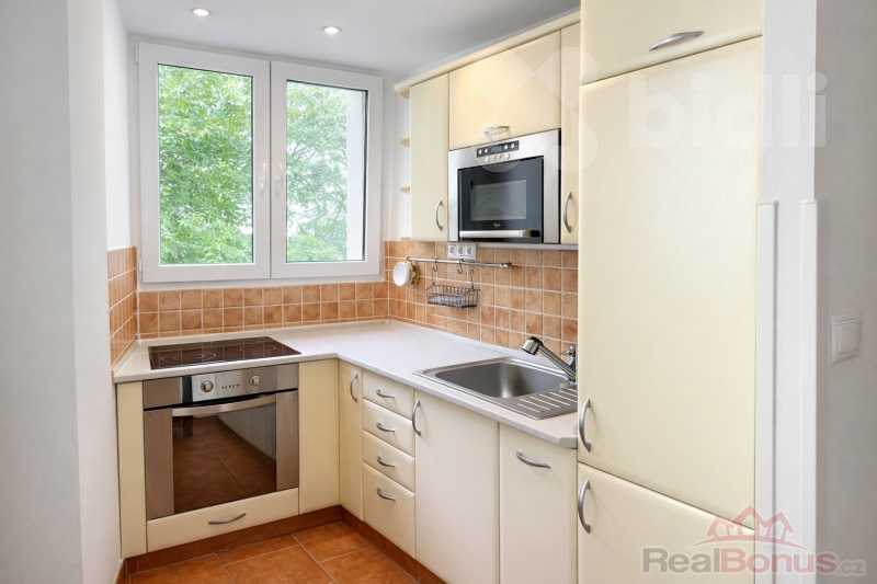 Byt má praktickou dispozici: obývací pokoj s kuchyňským koutem, ložnici, koupelnu s WC a chodbu. Součástí je kuchyňská linka, dvě prostorné vestavěné skříně a byt je částečně vybaven, takže se můžete rychle a pohodlně zabydlet. K bytu náleží také prostorný sklep.