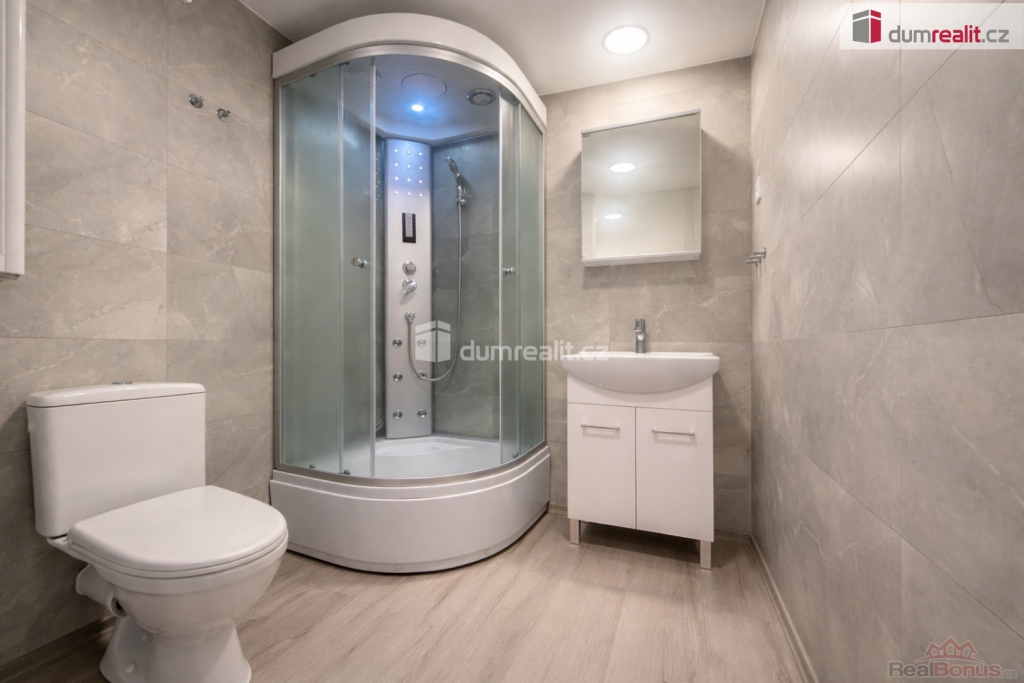 Dominantou bytu je nová kuchyňská linka vybavená mimo jiné myčkou nádobí. Koupelna nabízí nadstandardní sprchový kout s masážními funkcemi, který zajišťuje maximální komfort. Celý byt působí velmi světlým, čistým a moderním dojmem.