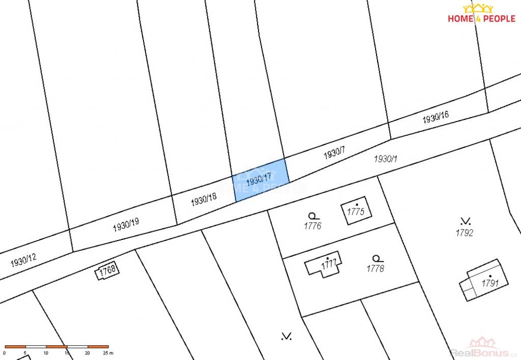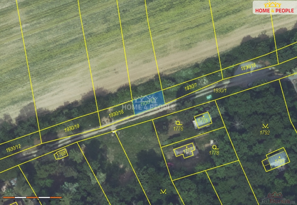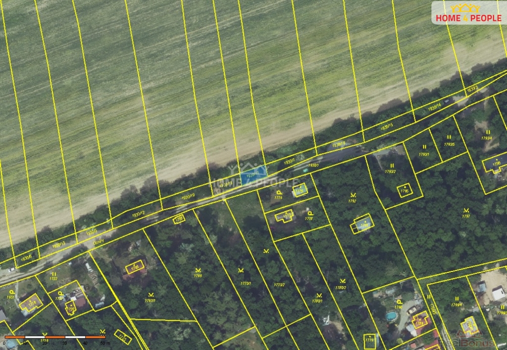 Pozemek má celkovou výměru cca 82 m, předmětem prodeje je tedy ideální polovina podílu.