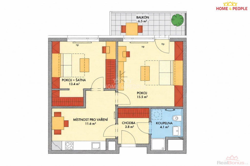 | Dispozice bytu | 2+1 |