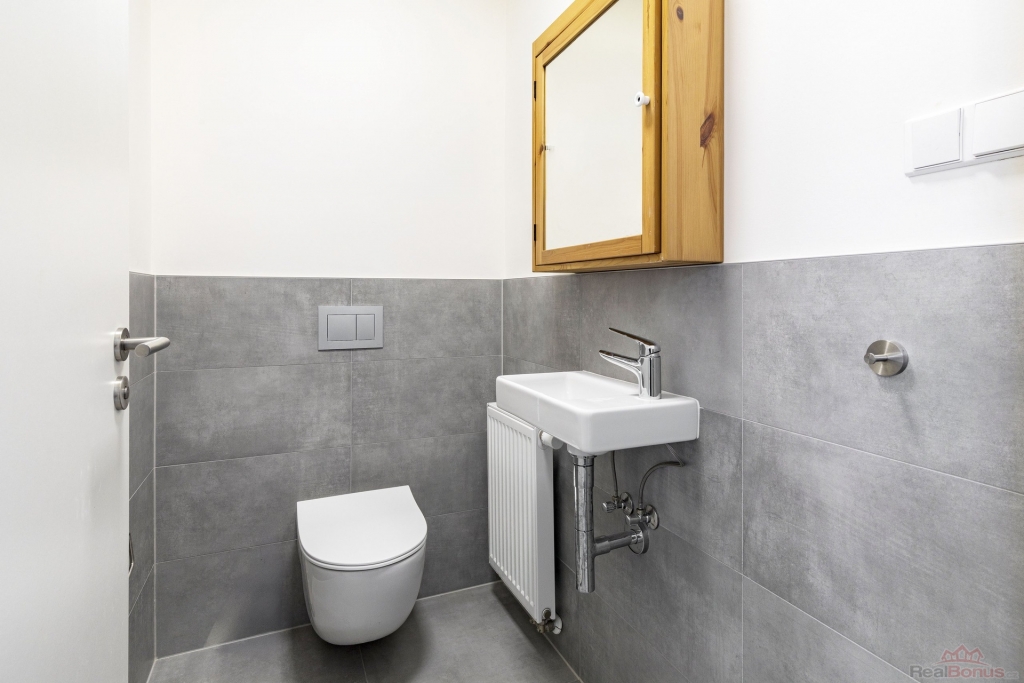 Ve všech pokojích v domě je filtrační rekuperace. V koupelnách jsou nové skříňky pod umyvadlo s úložnými prostory. Dům je vhodný pro rodiny s dětmi i zahraniční klientelu. V domě je také technická místnost, součástí nájmu je i pračka a sušička. Dům je možné si pronajmout nezařízený, nebo po dohodě s majitelkou ponechat část vybavení. Dům je k dispozici od 1. 7. 2026. Venkovní terasa je kompletně zařízená a veškeré vybavení je součástí nájemného.