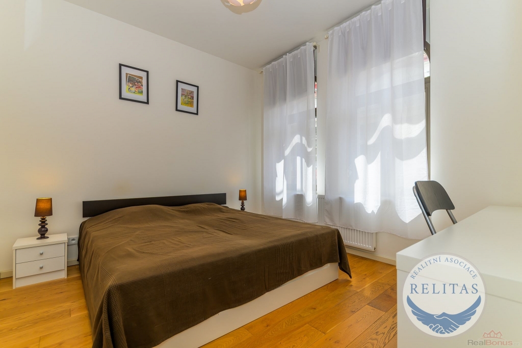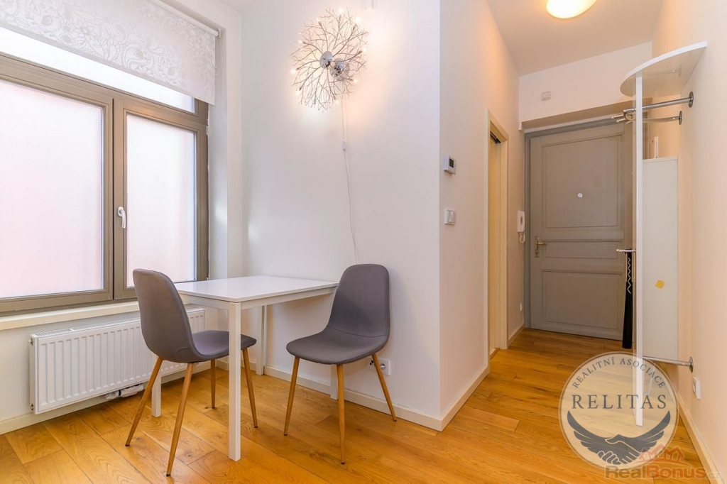 Exkluzivně nabízím k pronájmu zařízený, kompletně rekonstruovaný byt 2+kk o výměře 48 m, situovaný ve 3. patře cihlového domu s výtahem v ulici Kubelíkova, Praha 3 Žižkov.