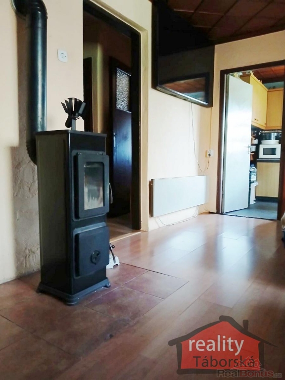 Vytápění zajišťuje kotel na dřevo a elektrické přímotopy. Ohřev vody - nový bojler (80l).