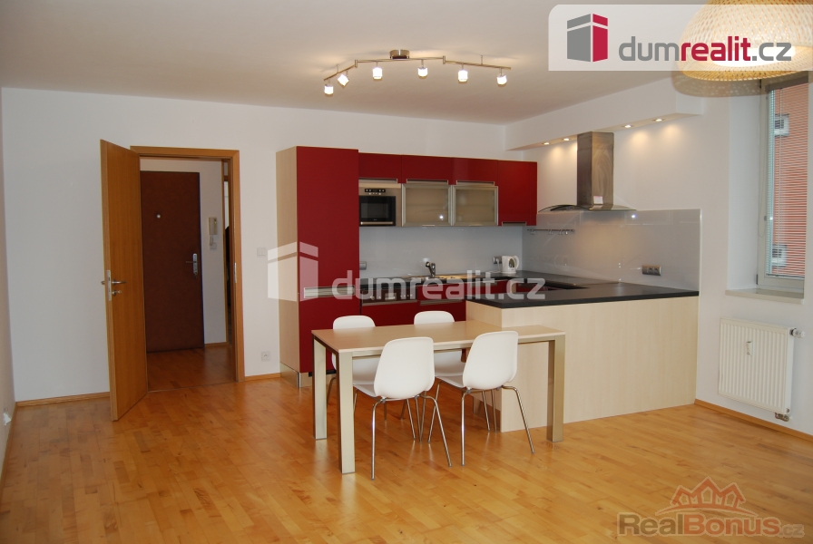 Byt disponuje prostornou vstupní chodbou, ze které je vstup do dvou samostatných pokojů a koupelny. Obývací pokoj s kuchyňským koutem nabízí krásný, ničím nerušený výhled na Prahu. Kuchyňská linka je plně vybavena spotřebiči lednice, myčka, elektrická trouba, varná deska a digestoř.