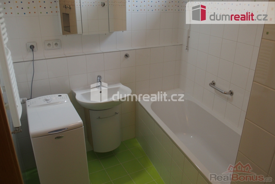 Koupelna je vybavena vanou, toaletou, pračkou a oknem, které zajišťuje dostatek denního světla. V ložnici se nachází velká vestavěná skříň se zrcadlem, která poskytuje dostatek úložného prostoru.