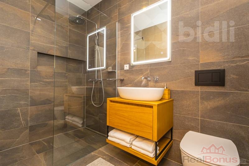 Interiér je vybaven podlahovým topením s možností dálkového ovládání, takže si teplotu nastavíte odkudkoliv ještě před příjezdem. Bezpečnost zajišťuje kamerový systém u vstupu do budovy. Díky moderním technologiím a novostavbě má apartmán velmi nízké provozní náklady.