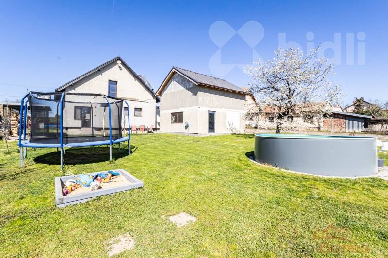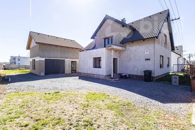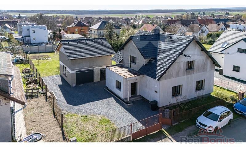 Součástí domu je rovněž prostorná patrová garáž/dílna, udržovaná zahrada, bazén a velký skleník. Nemovitost představuje ideální volbu pro rodinné bydlení.