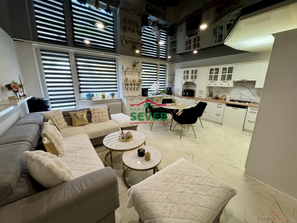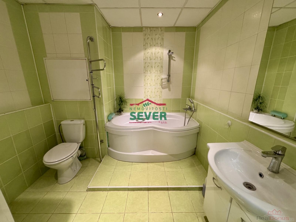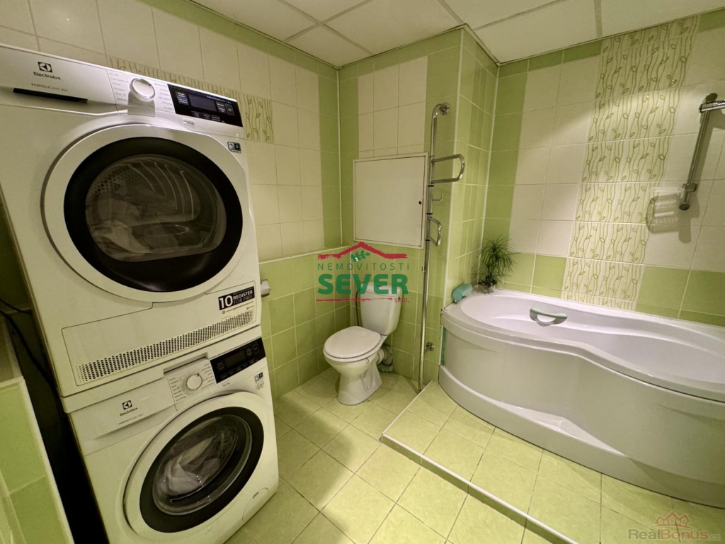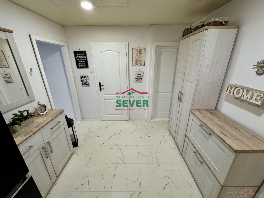 Nemovitosti SEVER vám zprostředkují koupi bytové jednotky s dispozicí 3+1 se zasklenou lodžií v osobním vlastnictví v Mostě v ul. Františka Malíka. Byt s výměrou 68 metrů čtverečních se nachází v přízemí panelového domu s výtahem v klidné části města. Byt prošel nákladnou rekonstrukcí a skládá se z předsíně, dvou ložnic, společně řešené koupelny s toaletou a obývacího pokoje propojeného s kuchyňskou částí a vstupem do zasklené lodžie. Byt prošel nákladnou rekonstrukcí, která zahrnuje elektroinstalaci v mědi, rozvody vody a odpadů, zděné jádro se sociálním zařízením v keramickém obkladu, kuchyňskou linku na míru s vestavěnými spotřebiči, napínané stropy s LED bodovým podsvícením v celém bytě vyjma jedné z ložnic a koupelny, podlahy, interiérové dveře s obložkovými zárubněmi, vstupní dveře, štuky, malby, zatahovací rolety den/noc v obývacím pokoji a kuchyňské části. Dům, ve kterém se byt nachází, prošel kompletní revitalizací. Veškerou občanskou vybavenost nalezneme v docházkové vzdálenosti do 10-ti minut od domu. V těsné blízkosti domu je dále spousta zeleně, dětské hřiště, rekreačně-sportovní areál Benedikt a sportovní centrum Tornádo Most. Centrum města je vzdálené 8 minut jízdy automobilem. V případě zájmu zajistíme optimální variantu financování na tuto nemovitost za zvýhodněných podmínek pro naše klienty.