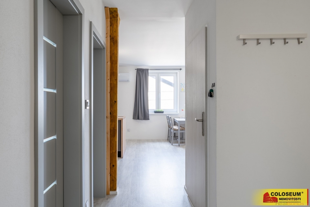 Velkou výhodou je kuchyňská linka, která v bytě zůstává, stejně jako gauč a koupelnová skříňka. Dispozice bytu nabízí dostatek prostoru pro pohodlné bydlení a možnost doladit interiér dle vlastních představ.