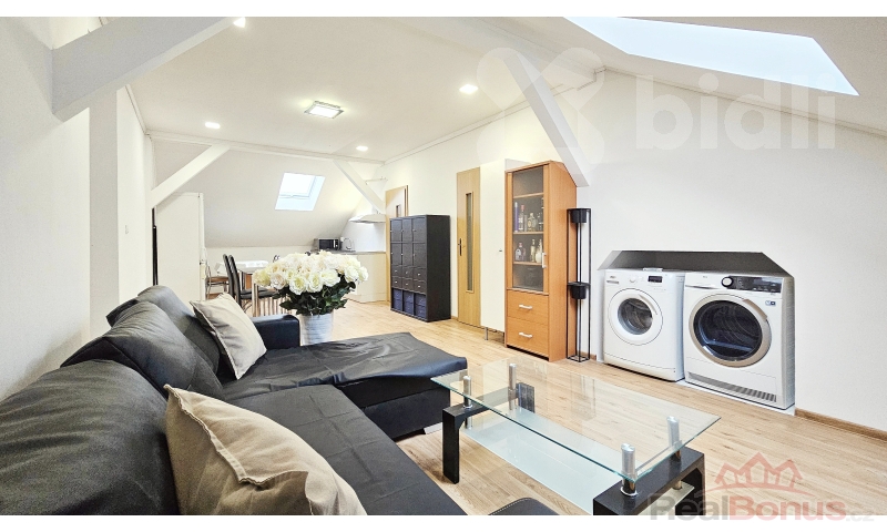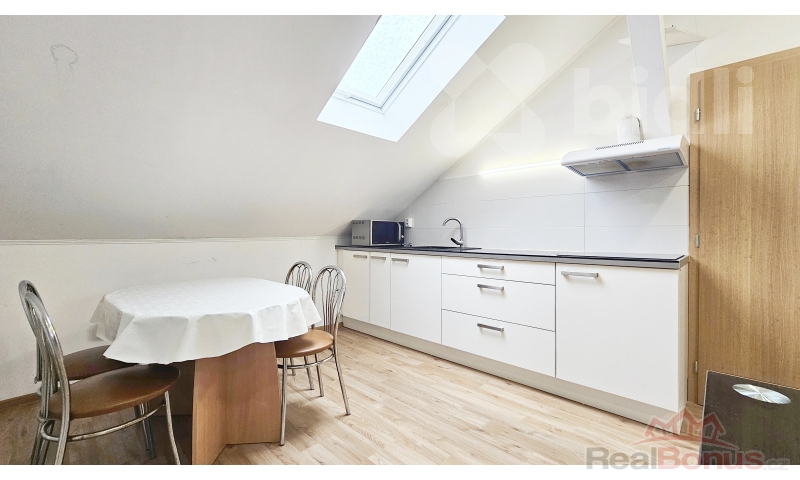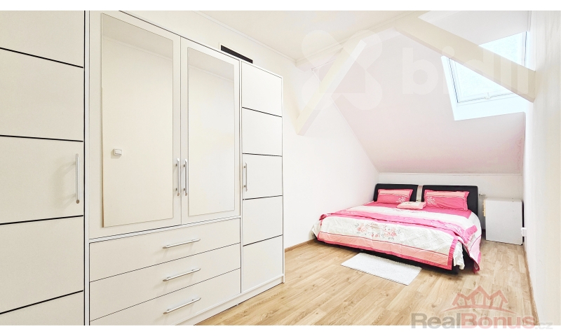 Najít opravdu velký byt, který nepůsobí chladně nebo neosobně, není úplně samozřejmost. A právě v tom je tenhle pronájem silný. Nachází se v podkroví rodinného domu a nabízí prostor, který je dnes spíš výjimkou než pravidlem. Neprůchozí pokoje dávají soukromí každému, kdo v bytě bude bydlet, samostatné wc je praktický detail, který oceníte víc, než se na první pohled zdá, a velký obývací prostor s kuchyňským koutem je přesně to místo, kde se život opravdu odehrává, ne jen "bydlí".