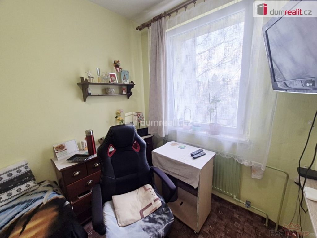 Dispozice bytu je promyšlená a nabízí zajímavé možnosti využití. Z předsíně se dostanete do koupelny, WC, obývacího pokoje a jednoho samostatného pokoje. Na obývací pokoj navazuje další místnost. Kuchyně je přístupná z předsíně a plynule na ni navazuje menší pokoj ideální třeba jako pracovna, dětský pokoj .Byt se nachází ve 4. nadzemním podlaží, tedy v posledním patře, což znamená jediné klid, žádné hluk nad hlavou a pěkný výhled jako bonus. Dům je zateplený a má plastové stoupačky.