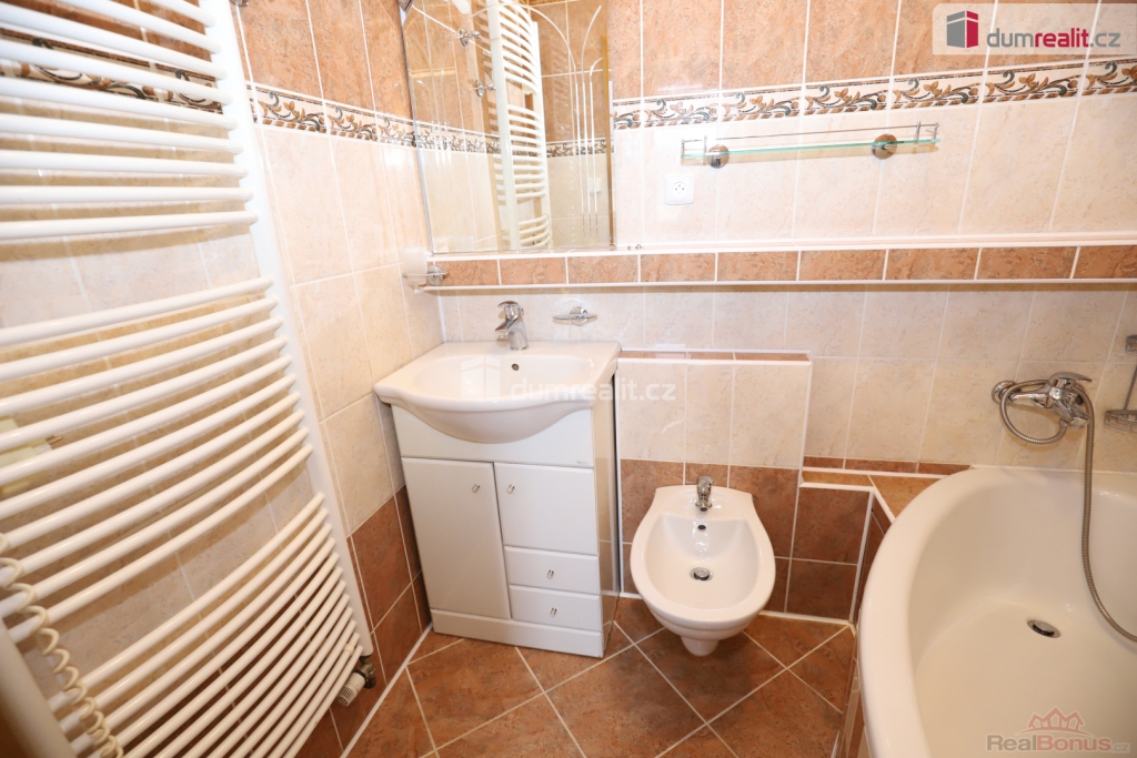 , Dumrealit.cz Vám zprostředkuje pronájem krásného, zrekonstruovaného, slunného bytu 3+1 v prvním patře cihlového domu v Karlových Varech Drahovicích, s vlastním parkovacím místem pro 1 vozidlo před domem k dlouhodobému pronájmu. Dispozice nabízí kuchyni, velkorysý obývací pokoj, ložnici a dětský pokoj. Dále je zde pěkná koupelna s rohovou vanou a umyvadlem, prostor na pračku a sušičku je v chodbičce mezi kuchyní, pokojem a vchodem do koupelny. Z velké předsíně je vstup na samostatnou toaletu. V pokojích bytu je plovoucí podlaha, v koupelně, WC a v předsíni je dlažba. V bytě jsou zánovní interiérové dveře, dřevěná okna mají dvojskla. Ve všech oknech jsou žaluzie. Zánovní je také kuchyňská linka, která zůstává k dispozici včetně spotřebičů: elektrické varné desky, elektrické trouby, myčky, digestoře. Byt se pronajímá nevybavený. Budova je po rekonstrukci včetně nové fasády, vstupních dveří, schránek. Vytápění zajišťuje centrální tepelné čerpadlo, ohřev teplé vody je elektrickým bojlerem. K bytu nenáleží sklep, ale je zde možnost uložit kola či koloběžku. Před vchodem do bytu jsou dvě rohové úložné skříně. Jedná se o klidný dům se slušnými sousedy. V okolí domu je veškerá občanská vybavenost, před domem je zastávka MHD, je zde škola, školka, supermarket. Čistý měsíční nájem činí 14.000,-Kč. Měsíční záloha na vodu pro 3 osoby 1.200, pro 4 osoby 1.600,-Kč, byt má podružný vodoměr. Měsíční záloha na teplo činí 3.300,-Kč. Ostatní náklady na dům činí pro byt 1.500,- Kč měsíčně. Měsíčně pro 3 osoby 20.000,- Kč, pro 4 osoby 20.400,- Kč. Elektřina se přepisuje na nájemníka. Kauci požaduje majitel ve výši 28.000,-Kč. Provize RK činí 15.000,-Kč a to již včetně DPH. Vlastník neumožní nájem zájemcům se zvířaty (explicitně si nepřeje zájemce s pejsky či kočkami), dále kuřákům a zájemcům pobírajícím sociální dávky. Ev. číslo: 655448. Energetický štítek: G (20 kWh/m2/rok).