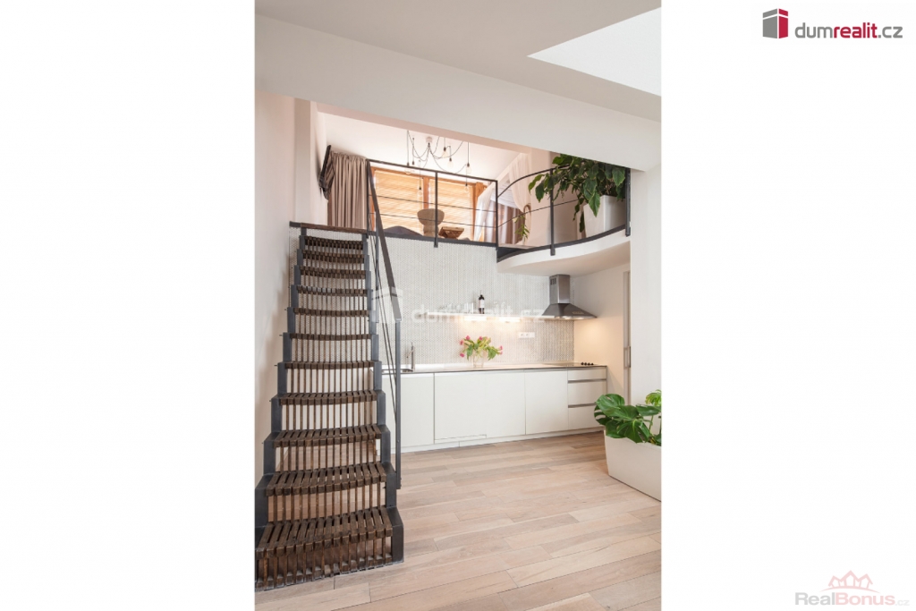 , Dovolujeme si Vám zprostředkovat pronájem stylového mezonetového apartmánu Honeymoon 81 s vlastní terasou, který se nachází na Plzeňské ulici v žádané lokalitě Prahy 5. Tento plně zařízený mezonet o dispozici 1+1 a celkové ploše 38 m je situován v 5. patře secesní budovy bez výtahu. Interiér je prakticky rozdělen do dvou podlaží v dolní části se nachází kuchyňská a jídelní zóna s kompletně vybavenou linkou, koupelna s toaletou a předsíň s vestavěnou šatní skříní. Horní patro nabízí romantickou ložnici s manželskou postelí s nebesy (king size) a sofa. Pro maximální komfort je apartmán vybaven klimatizací a TV se satelitním příjmem. Velkou výhodou tohoto pronájmu je nadstandardní servis zahrnutý v ceně, který obsahuje Wi-Fi připojení a pravidelný úklid prováděný jednou týdně, včetně výměny lůžkovin a ručníků. Lokalita nabízí výbornou dopravní dostupnost, zastávka tramvaje U Zvonu je v bezprostřední blízkosti a na stanici metra Anděl dojedete za 5 minut. Byt je vhodný pro 1 až 2 osoby a je připraven jak pro krátkodobé, tak pro dlouhodobé ubytování. V případě dlouhodobého pronájmu činí měsíční nájemné 33 000 Kč, ke kterému se připočítávají služby spojené s užíváním nemovitosti ve výši 5 000 Kč. Majitel požaduje vratnou kauci ve výši 33 000 Kč. Pro krátkodobé zájemce začíná cena při pobytu do jednoho měsíce na 2 270 Kč za noc, při pobytu do jednoho týdne pak od 2 840 Kč za noc. Byt je volný ihned a připraven k nastěhování. Ev. číslo: 654705. Energetický štítek: G