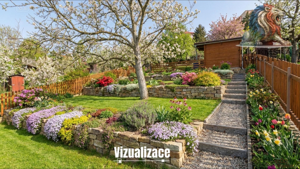 Vize soukromého wellness: Pod korunami stávajících ořešáků je ideální místo pro koupací sud s topeništěm. Večer se naložíte do horké vody a pod hvězdami si užijete ticho, které v paneláku nenajdete.