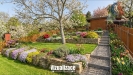 Zahrada je orientovaná na jih, krásně na ni svítí sluníčko. Rostou na ní jabloně a vlašské ořechy. Je svažitá a jsou na ni vytvořeny kaskády jako vodorovné plochy. Je obdélníkového tvaru o stranách cca 15m x 27,5m.