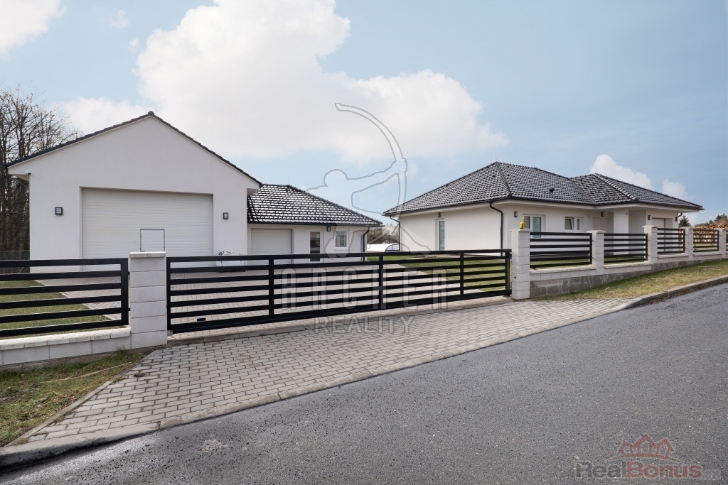Nabízíme k prodeji RD typu bungalov, 4+kk (128,5 m2) s terasou (52 m2), s garáží (22,9 m2), závětřím (3 m2), extra dvojgaráží (112 m2), celkem 318 m2, na pozemku 1632 m2, Zruč n/ Sázavou. Rodinný dům z roku 2019 je vhodnou volbou pro ty z vás, kteří ocení funkčně a moderně řešený dům s dispozicí 4+kk, pečlivě udržovaný majiteli, k příjemnému bydlení a podnikání, vč. zajištěného soukromí díky umístění v klidné a žádané části Zruče n/S., v zeleni, na dosah centra. Oplocená udržovaná zahrada s terasou a s bazénem se slanou vodou je skutečnou oázou klidu.