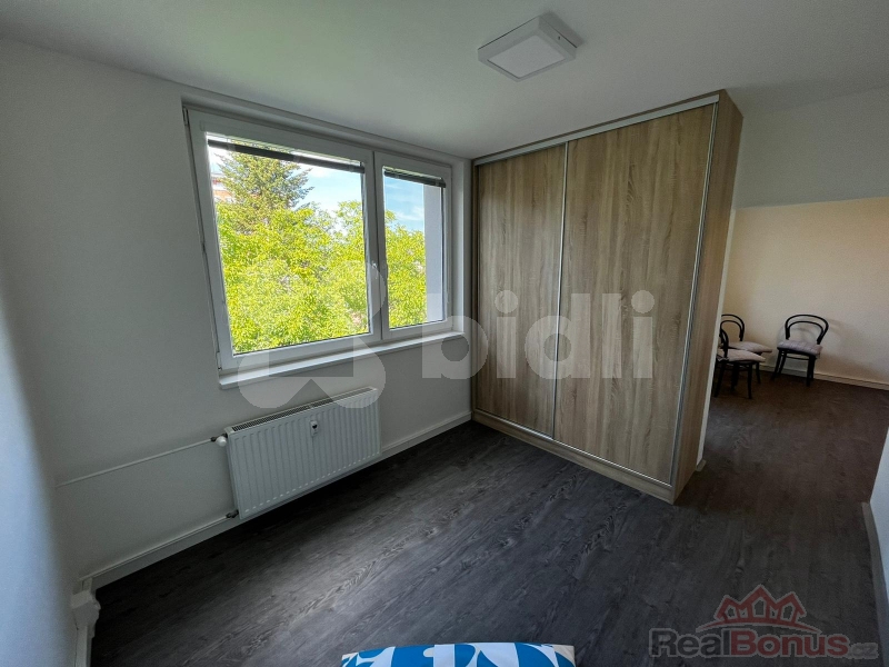 Byt se nachází v 6.NP bytového domu s výtahem a jeho dispozici tvoří vstupní chodba, koupelna se sprchovým koutem a toaletou, kuchyně a ložnice. Kuchyňská linka je vybavena vestavěnou varnou deskou, pečící troubou a digestoří, dále je v bytě lednice s mrazákem, jídelní stůl a židle, v koupelně automatická pračka. K bytové jednotce náleží sklep, parkování zajišťuje přilehlé parkoviště před domem.