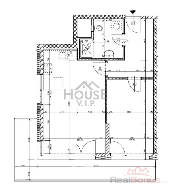 | Dispozice bytu | 2+kk |