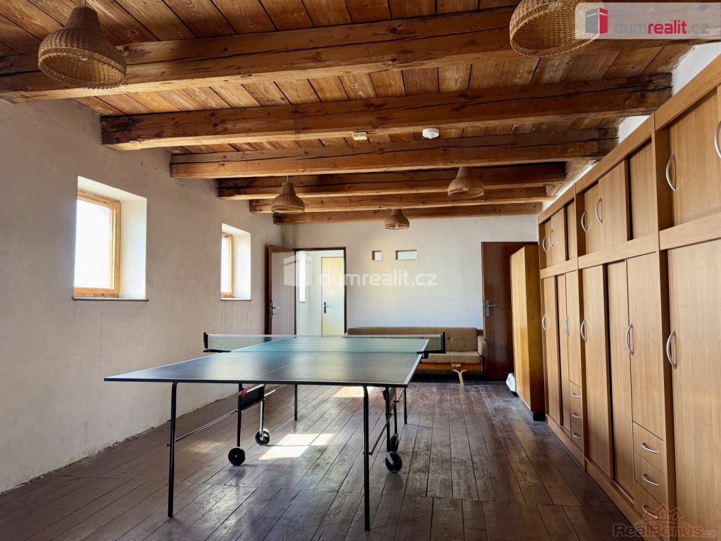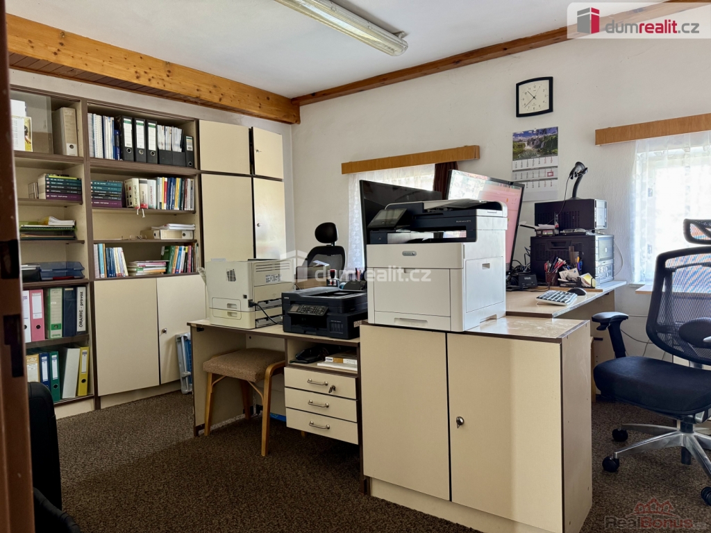 V prvním nadzemním podlaží se nachází obytný prostor dispozičně 3kk včetně koupelny a samostatného WC. Dále se zde nachází kancelářské a skladovací prostory. Vytápění nemovitosti je řešeno elektro kotlem a kanceláře elektrickými přímotopy, případně je možné využít plynu, který je vedený podél hlavní budovy. Internetové připojení řešené optickým kabelem. Voda je z obecního vodovodu s rozvodem po celé nemovitosti s možností využití vlastní studny. Odpady jsou řešeny septikem s přepadem do kanalizace. Dojezdová vzdálenost do Kroměříže je cca 9km a do Zlína cca 25km. Klidné prostředí, výborná dostupnost a široké možnosti využití, dělají z této nemovitosti hodně vyjímečnou příležitost. Ev. číslo: 652307. Energetický štítek: G