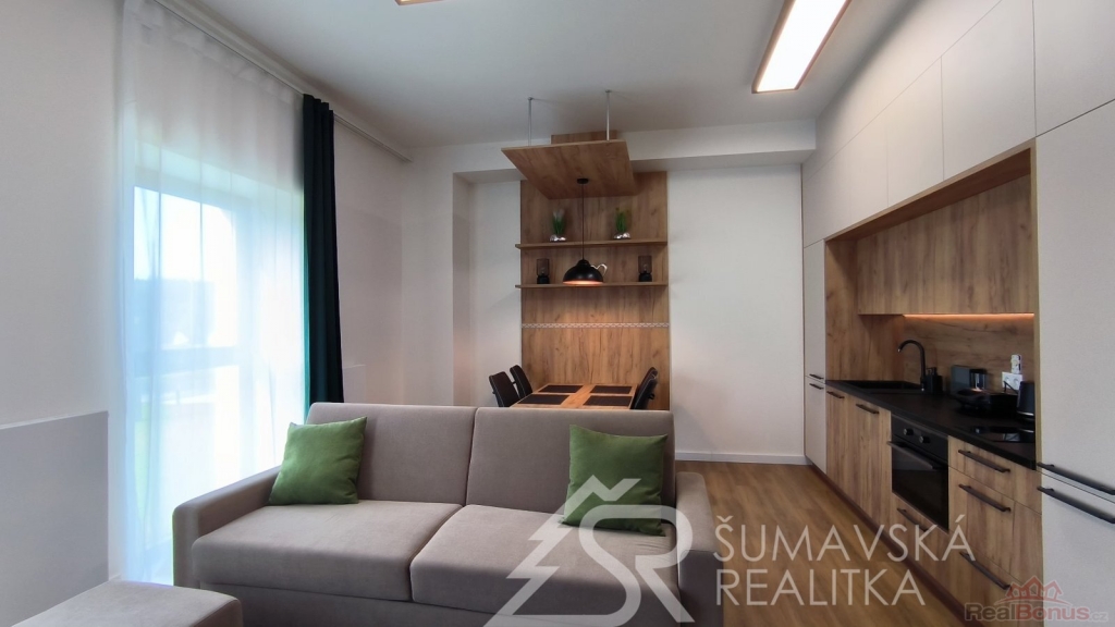 PLNĚ ZAŘÍZENÝ KOMFORTNÍ PROSVĚTLENÝ BYT V NOVÉM DOMĚ JAVORNÁ ŠUMAVA.