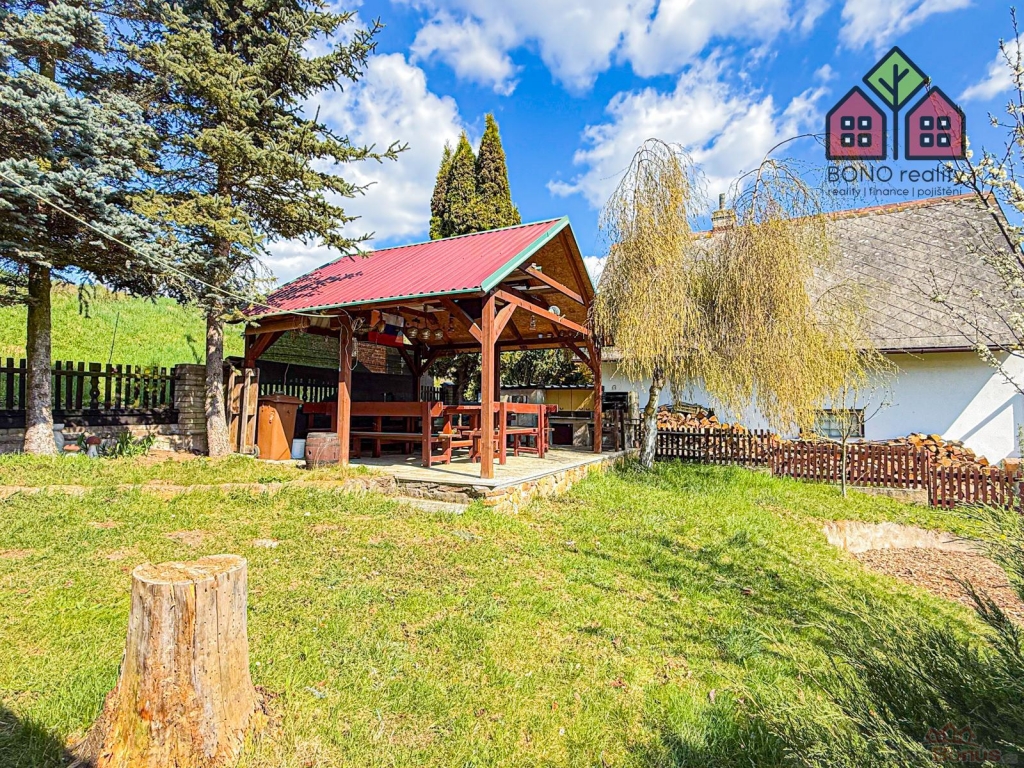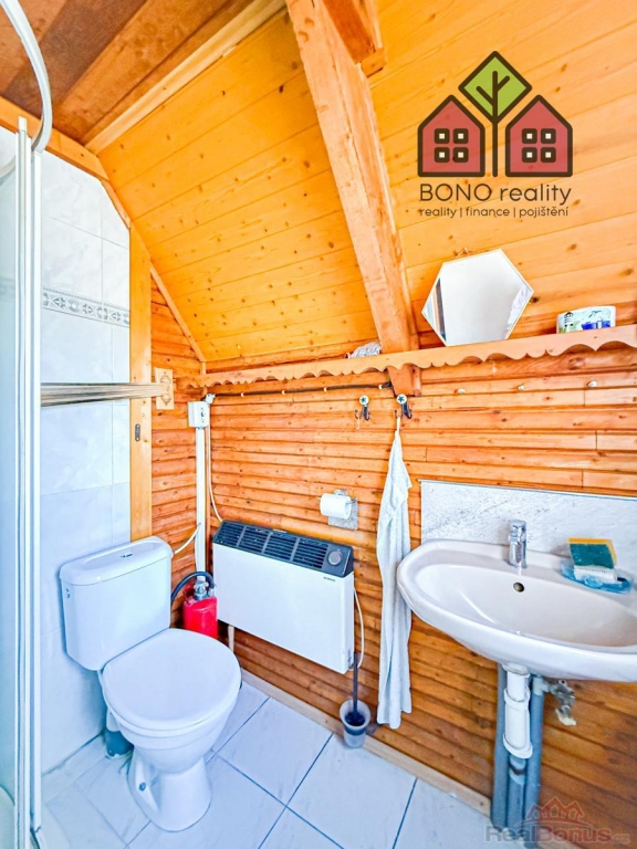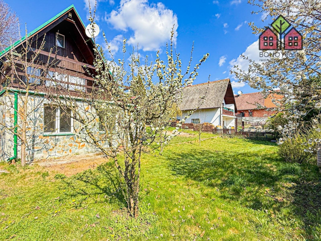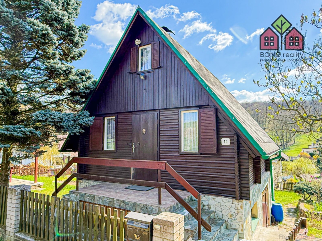 BONO reality Vám ve výhradním zastoupení vlastníka nabízí ke koupi stylovou chatu k celoročnímu užívání se zahradou, pergolou a garáží, která se nachází v obci Velemín, v nádherné části obce Oparno.