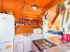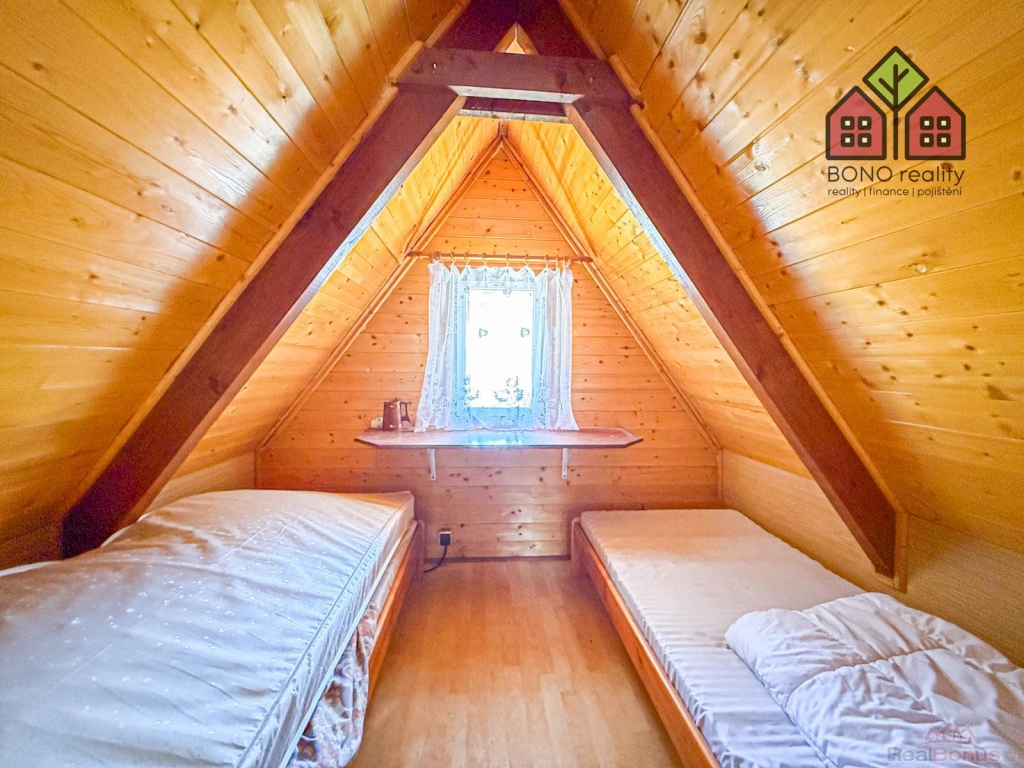 Chata, která je předmětem tohoto prodeje je dispozice 3+1 a podlahové plochy 72 m2. Náleží k ní terasa o výměře 12 m2, se vstupem z obývacího pokoje, která nabízí nádherný výhledem do okolí, zejména tedy na vrch Lovoš. V letních měsících lze na terase posnídat či obědvat, večer posedět s přáteli a ráj na zemi to bude i pro Vaše domácí mazlíčky či zde můžete mít pěkné, čistě odpočinkové zázemí. Chata se skládá ze dvou obytných podlaží a sklepní prostor, resp. ze sníženého přízemí. Vstup do chaty tvoří chodba s přístupy do všech místností, které se v přízemí nachází -> obývací pokoj, kuchyně a koupelna. Kuchyně disponuje standardním vybavením a koupelna je vybavená umyvadlem, sprchovým koutem a společnou toaletou. Ve druhém patře jsou poté k dispozici dva pokoje, které jsou čistě pro spací účely a disponují celkovou kapacitou čtyř lůžek -> pro rodinu naprosto ideální.