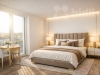 I ložnice je nebývale prostorná, navíc na ni navazuje soukromý balkon a samostatná šatna.