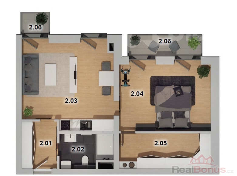 | Dispozice bytu | 2+kk |