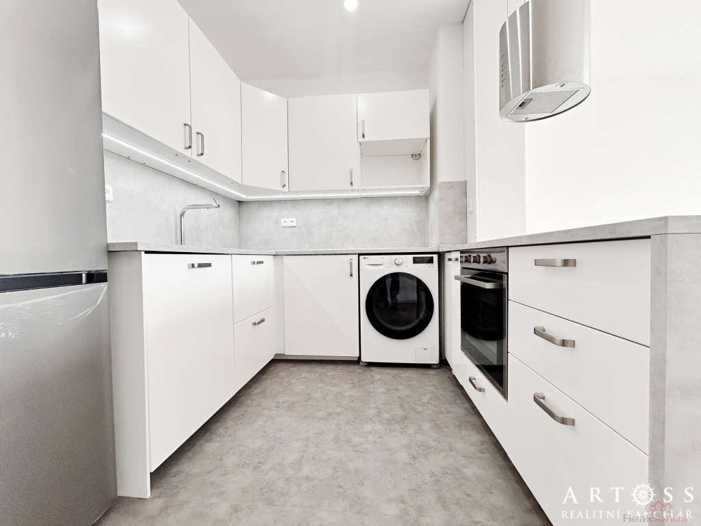 Obývací pokoj s kuchyňským koutem: 28,7 m2, vybavený novou linkou se spotřebiči (trouba, myčka nádobí, varná deska, digestoř, pračka).