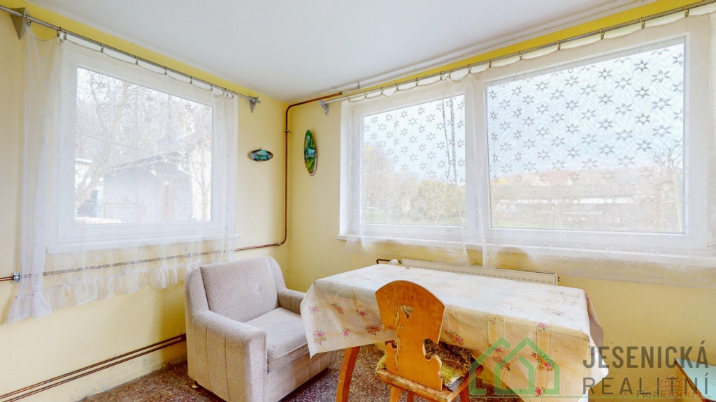 Realitní kancelář Jesenická realitní nabízí v zastoupení majitele k prodeji rodinný dům se zahradou, situovaný v klidné části obce mimo hlavní komunikaci. Dům je aktuálně součástí sousední nemovitosti, přičemž po prodeji dojde k jeho oddělení. Úprava pozemku kolem domu bude řešena dohodou s majitelem.