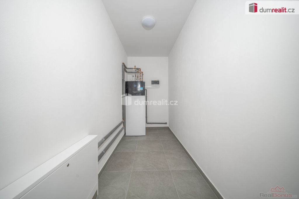 Dům je postaven jako zděná novostavba s důrazem na kvalitní technické řešení. V celém domě je instalováno podlahové vytápění napojené na tepelné čerpadlo, které zároveň zajišťuje ohřev teplé vody. Okna jsou plastová s izolačními trojskly. Nemovitost je napojena na veškeré inženýrské sítě vodu, kanalizaci a elektřinu. Pozemek je kompletně oplocený a nabízí parkování přímo na vlastním pozemku za pojezdovou bránou.