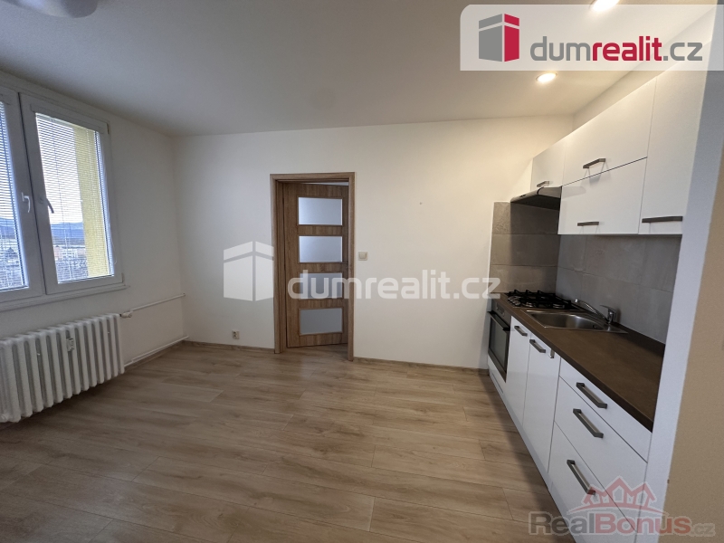 Nová kuchyňská linka. Plastová okna, žaluzie, topení ústřední, podlahy jsou PVC.