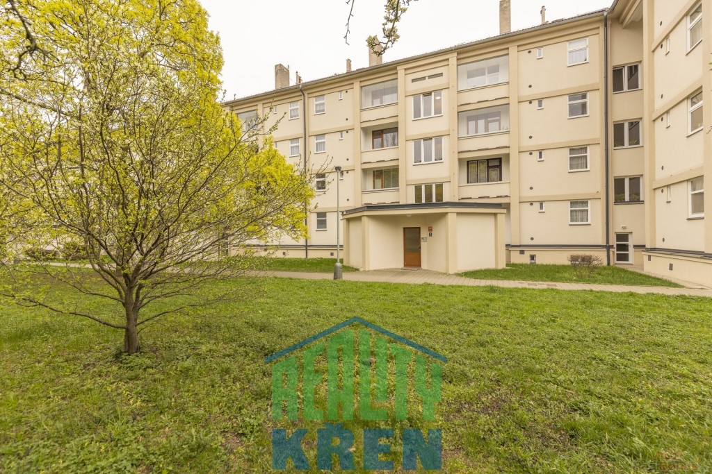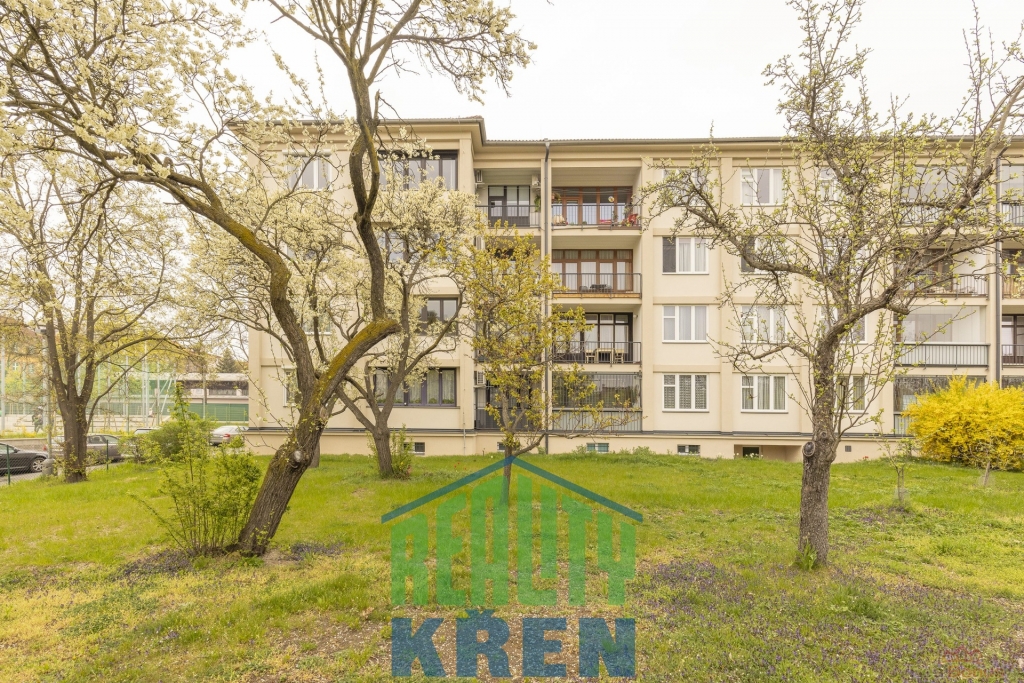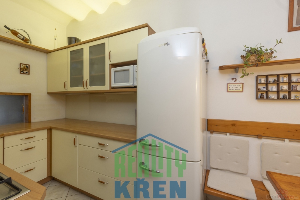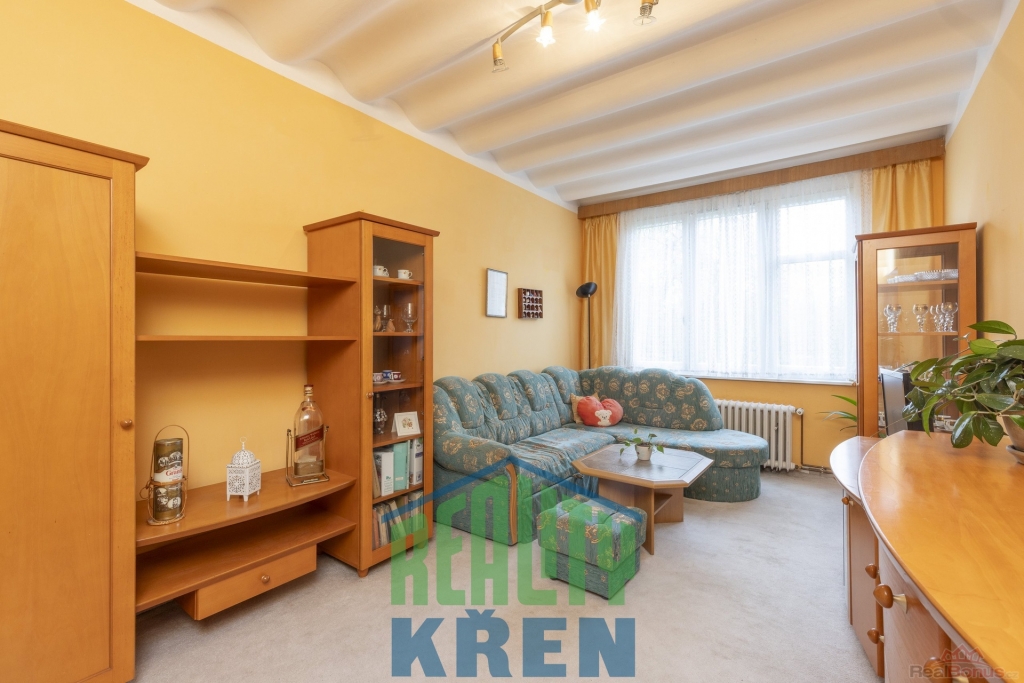 Vstupní hala s krbovými kamny 16 m2, obývací pokoj se sektorovým nábytkem 24 m2 a vstupem na lodžii 7,5 m2 , kuchyně s vybavenou kuchyňskou linkou 8,5 m2, 2x neprůchozí ložnice 19 m2, koupelna s vanou, samostatné WC, spíž, 2x šatna. K bytu náleží komora na patře a sklep 6m2 v suterénu domu. Byt i dům po rekonstrukci. Oplocená zahrada za domem ke společnému užívání, bezproblémové parkování. Veškerá občanská vybavenost v místě, výborná dopravní dotupnost.