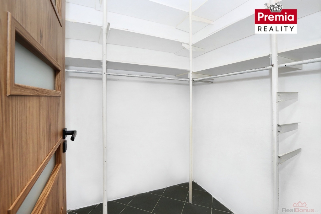 Je zde kuchyňská linka včetně spotřebičů, skříňka na potraviny, jinak je nezařízený.