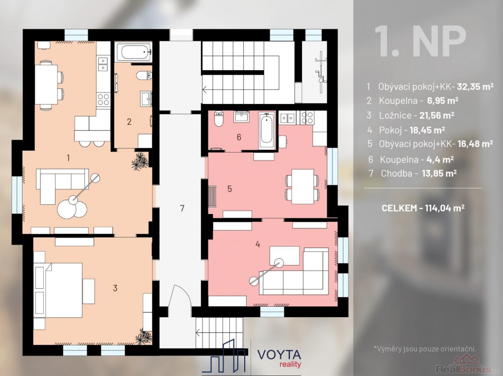 Apartmán 1 (1. NP): 2+kk, 39,3 m2