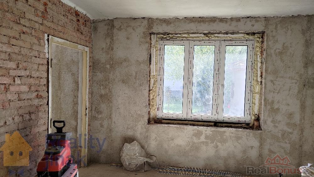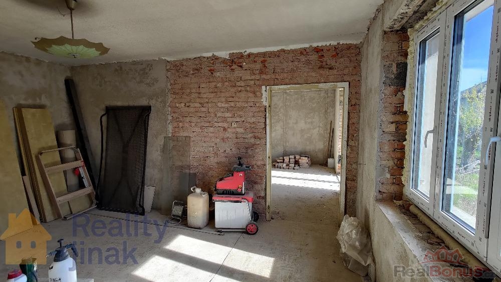 Dům má dispozici 3+1 a je částečně podsklepený 20m2. Dům je suchý i ve sklepních prostorech. Zastavěná plocha domem je cca 120m2. Je započatá rekonstrukce nová plastová okna s trojsklem, hrubé omítky, betonová podlaha a hlavní elektrický kabel doveden k rozvodové skříni. Nový majitel tak má možnost si prostor upravit dle svých potřeb a vkusu. Půda domu je z poloviny s betonovou podlahou a skýtá další možnost rozšíření bytového prostoru. Na pozemku se nachází garáž, která je určená ke zboření s možností výstavby nové. Dům je napojen na vlastní studnu, ale je možnost se napojit na vodovodní řad. Kanalizace je zavedena do domu, konstrukce domu je cihlová, střešní krytina pálené tašky jsou v dobrém stavu.