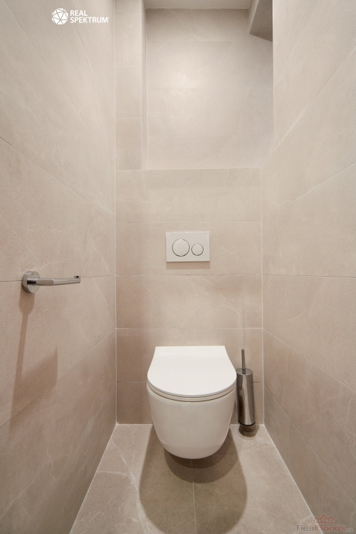 Koupelna je vybavena sprchovým koutem, dvěma umyvadly, pračkou a sušičkou. Toaleta je oddělena.