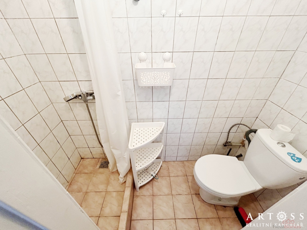 Koupelna (1,9 m2): se sprchovým koutem a WC.