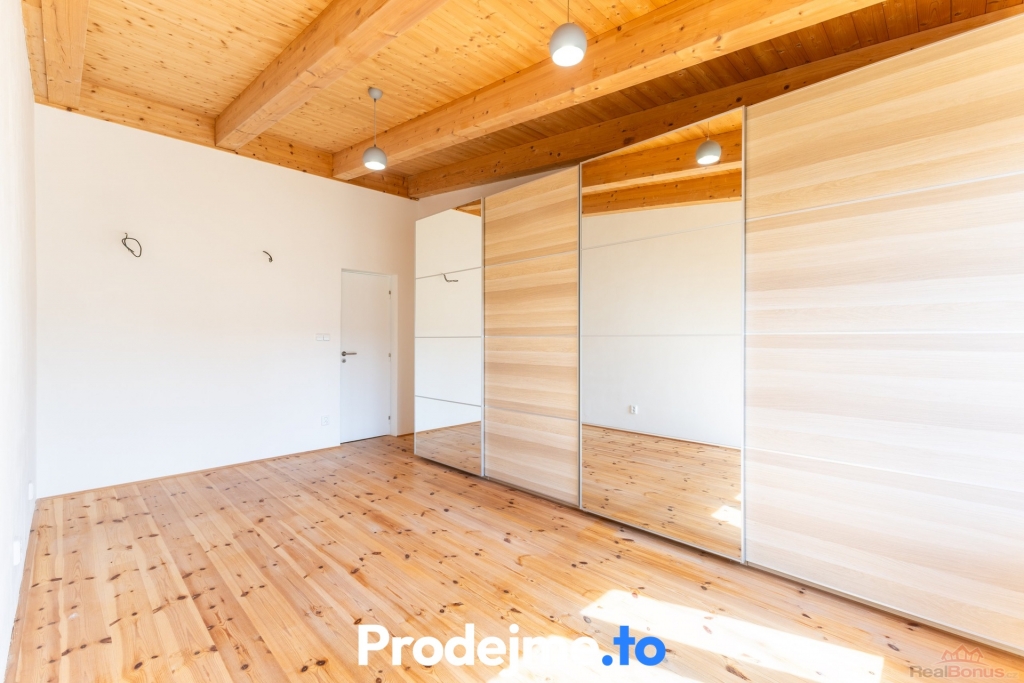 O tom vás ihned přesvědčí obývací pokoj s designovými kamny Romotop, vybavená kuchyňská linka a vstup na lodžii. Ať už si sednete s knihou, zapálíte oheň v kamnech nebo jen v tichu posedíte, ten pocit ?doma? tady přijde přirozeně. Právě to vám dá možnost vychutnat si slunné dny na čerstvém vzduchu, aniž byste museli opustit pohodlí domova. Příjemnou atmosféru má i ložnice s velkou šatní skříní a vlastním vstupem do koupelny s vanou a toaletou. První patro je přístupné přímo z úrovně parkování a doplňuje ho prostorná předsíň s místem pro šatnu.