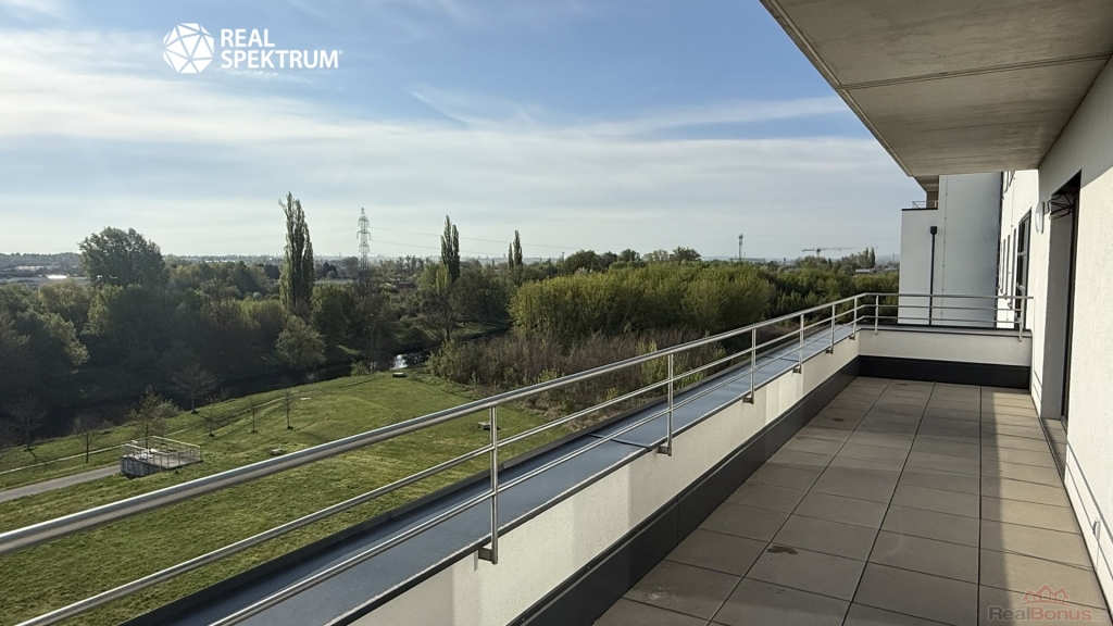 Po celé šířce bytu prochází velkorysá terasa o výměře 23,1 m2, kde se najde místo pro relaxaci, posezení s přáteli i pěstování bylinek. Přístup na terasu je z každého pokoje, výhledy směřují k řece a do klidného prostředí s cyklostezkou.
