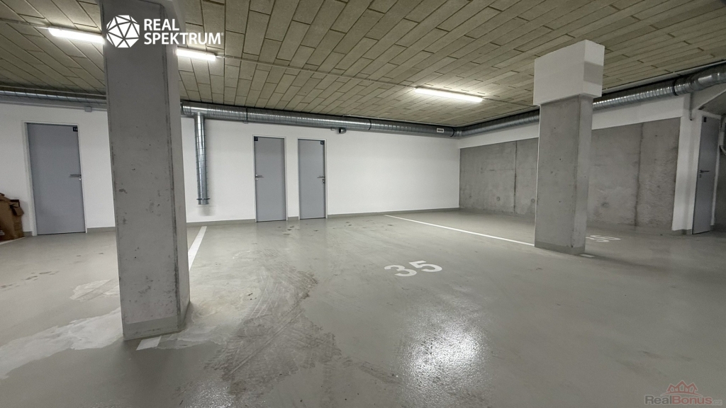 K bytu náleží dva sklepy pro uskladnění potravin i např. jízdních kol a také rozšířené garážové stání.