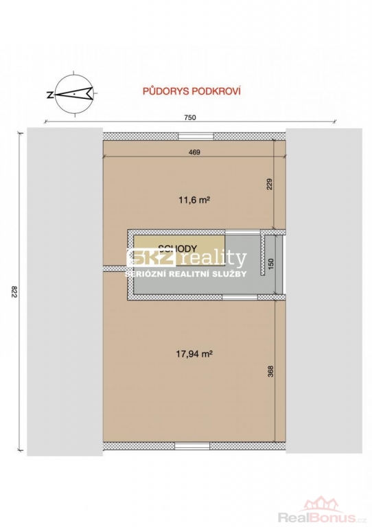 - podkroví: dvě útulné místnosti vhodné ke spaní, včetně úložných prostor