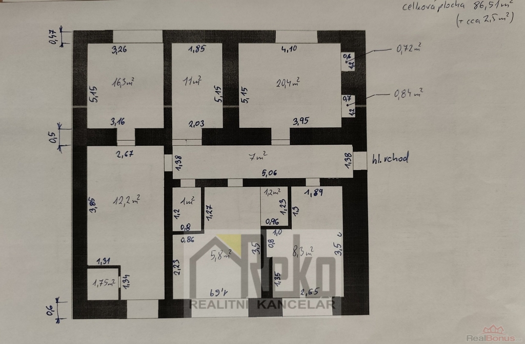 | Celková podlahová plocha | 86 m² |