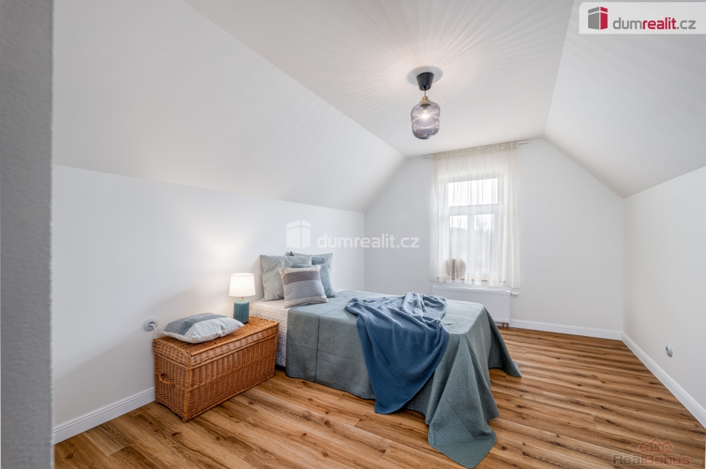 Podkroví nabízí ideální zázemí pro děti, hosty nebo klidnou pracovnu.