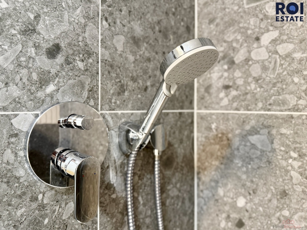 Hned u vstupu vás uvítá světlá předsíň, kde najdete stylový dřevěný policový regál, který skvěle poslouží pro uložení kabátů, bot nebo vašich oblíbených dekorací. Koupelna je pak skutečnou oázou elegance. Je obložená velkoformátovou dlažbou v dekoru kamene a nabízí prostorný sprchový kout se skleněnou zástěnou, designové umyvadlo a toaletu. Celý prostor doplňuje zrcadlo s integrovaným LED osvětlením a kvalitní dřevěná plovoucí podlaha, která celému ateliéru dodává útulnou atmosféru. Výhodou mlže být i to, že prostor je jinak nezařízený, což vám dává absolutní svobodu vytvořit si interiér snů přesně podle vašich potřeb.