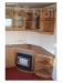 V přední části se nachází velký obývací pokoj s rozkládací pohovkou, která nabízí spací lůžka pro tři osoby, konferenční stolek a skříňka s plynovým krbem. Kuchyň má plynový sporák s elektrickou troubou, prostor pro lednici, pračku. Součástí je také jídelní stůl a taburetky.